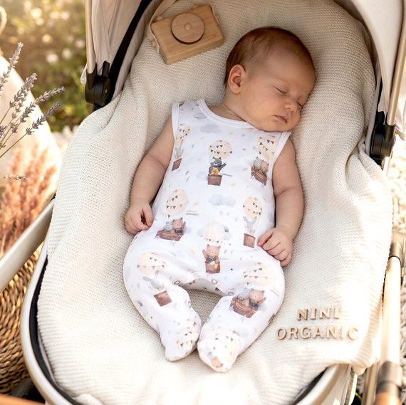 La tutina è prodotta in Polonia con 100% cotone biologico, coltivato senza fertilizzanti artificiali né sostanze chimiche aggressive. Il tessuto è particolarmente morbido, traspirante e con proprietà ipoallergeniche, ideale per la pelle delicata dei neonati. La fibra naturale favorisce una corretta termoregolazione: mantiene il calore nei mesi più freddi e aiuta a evitare il surriscaldamento nelle giornate più miti.
