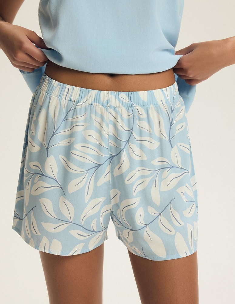 I pantaloncini corti con stampa floreale aggiungono un tocco estivo e fresco al completo. L’elastico in vita assicura una vestibilità comoda senza stringere. Questo pigiama donna corto in viscosa è ideale non solo per dormire, ma anche come abbigliamento homewear leggero durante l’estate. Occupa poco spazio in valigia e si asciuga rapidamente, perfetto anche per i viaggi.