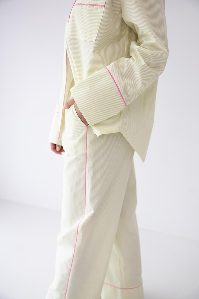 Pigiama donna Sensis Raven lime – cotone, camicia con bottoni e pantaloni