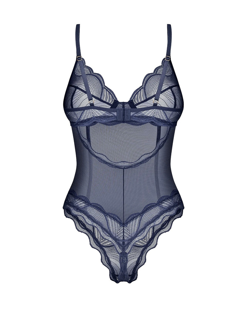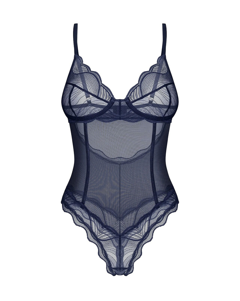 - Il body Nightly Blue di Obsessive unisce tessuto trasparente e morbido pizzo in un elegante colore blu notte. Le coppe morbide con ferretto modellano il seno in modo naturale, mentre le spalline regolabili garantiscono una vestibilità confortevole. Un cap
