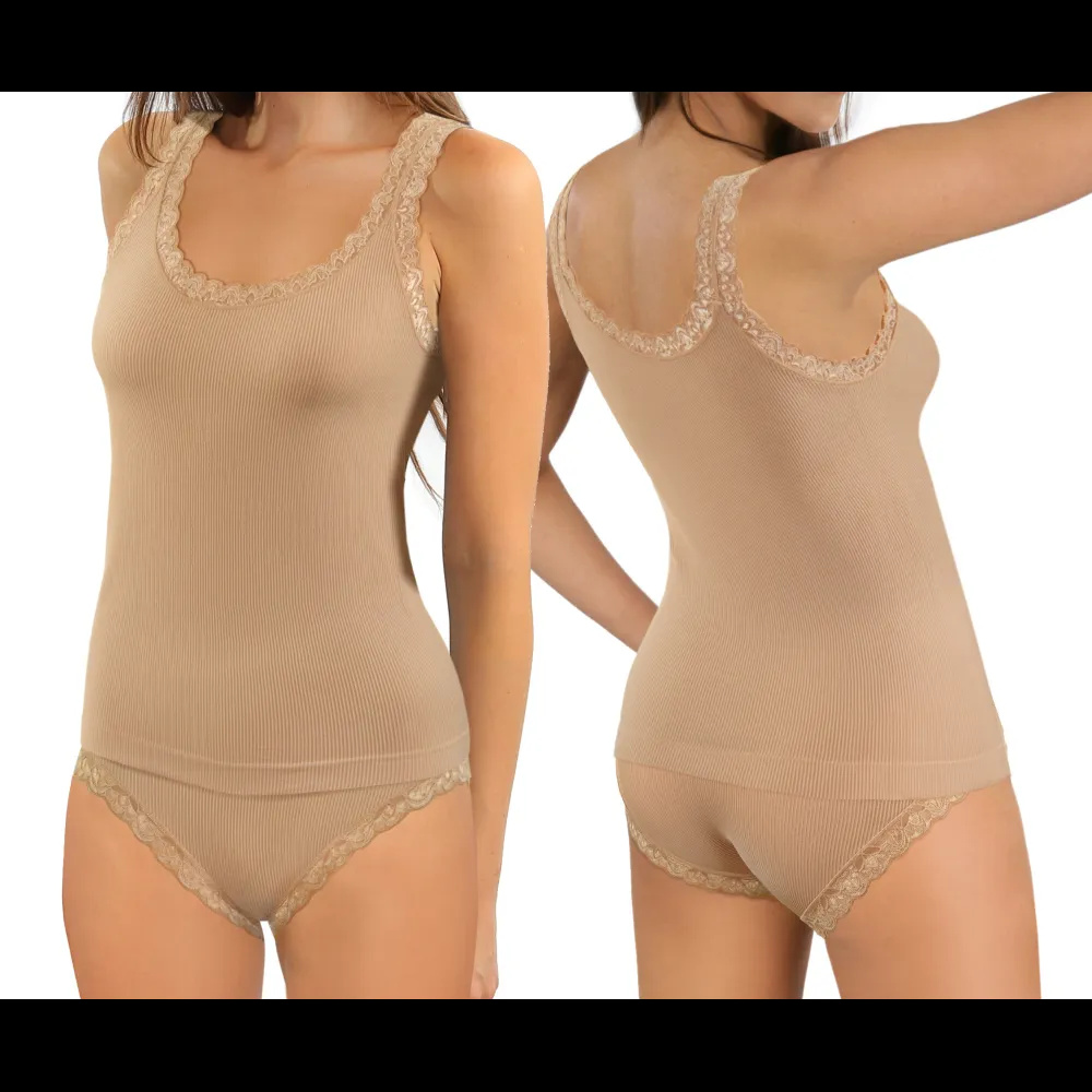 Risponde a ricerche come: canotta donna senza cuciture, top donna elastico con spalline, canotta base con pizzo, intimo donna comodo per tutti i giorni.