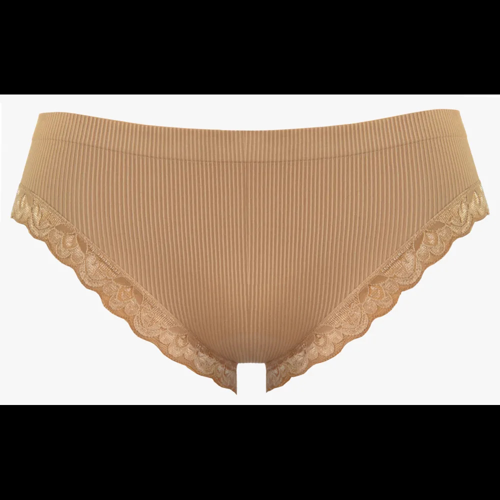 • Slip senza cuciture con dettagli in pizzo che si adattano perfettamente al corpo. Invisibili sotto i vestiti – comfort quotidiano da provare.