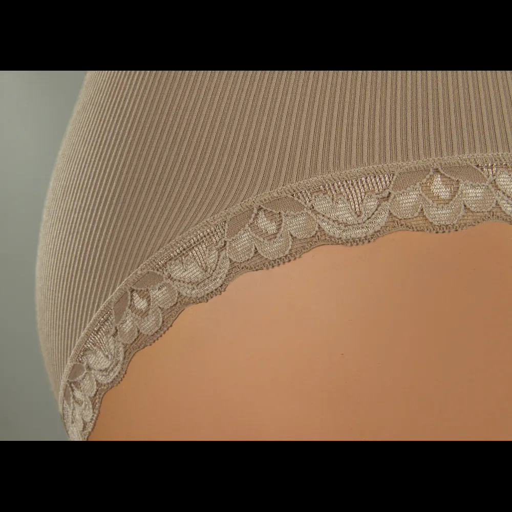 La fascia alta in vita garantisce stabilità senza creare pressione, permettendo un comfort prolungato durante tutta la giornata. I dettagli in pizzo aggiungono un tocco femminile, rendendo questo modello non solo funzionale ma anche esteticamente piacevole.