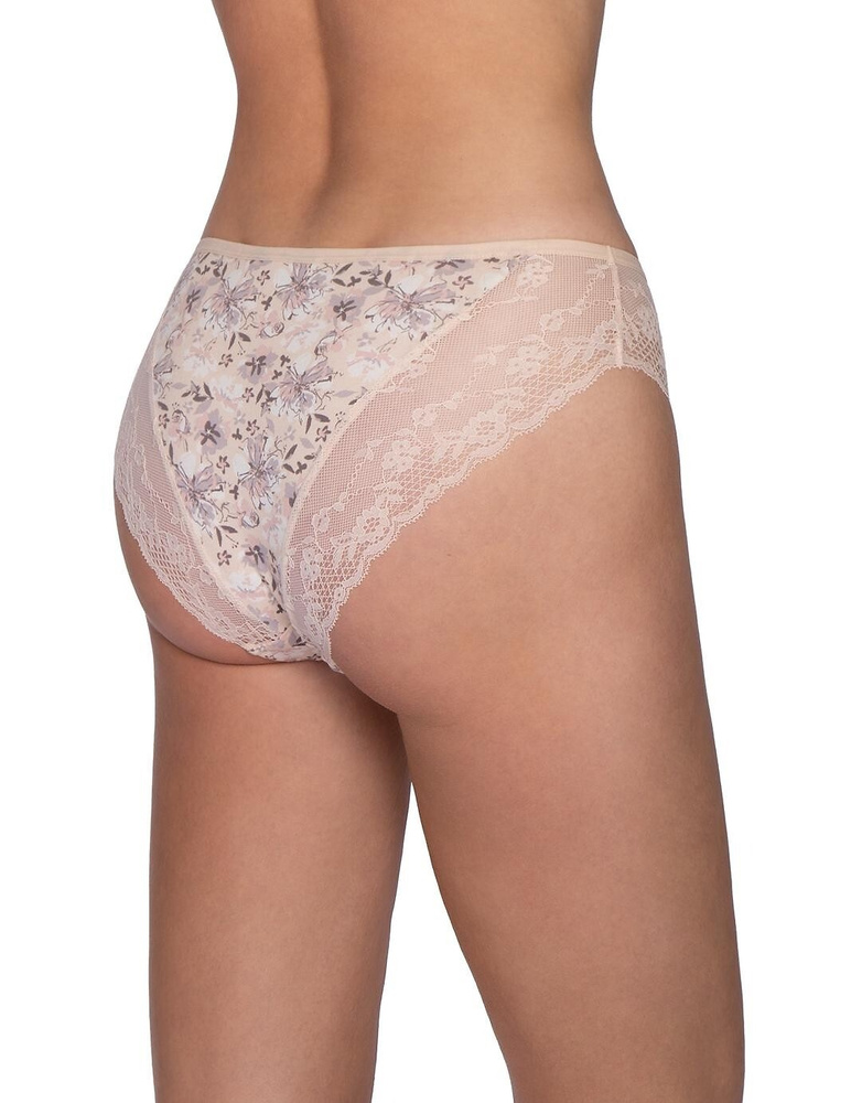 Il set include due slip nei colori neutri beige e mocca, facili da abbinare a qualsiasi outfit. La parte anteriore è realizzata in cotone liscio o leggermente decorato, che garantisce una sensazione naturale sulla pelle. Il retro è rifinito con pizzo traforato, che dona leggerezza e un tocco femminile senza compromettere il comfort.