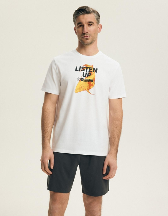 La maglietta a maniche corte con scollo rotondo si adatta naturalmente al corpo senza costrizioni. La stampa discreta sul davanti aggiunge un tocco moderno ma resta facile da abbinare e adatta all’uso quotidiano. I pantaloncini a tinta unita, con lunghezza sopra il ginocchio, favoriscono la ventilazione e risultano perfetti per le notti più calde o per ambienti riscaldati.