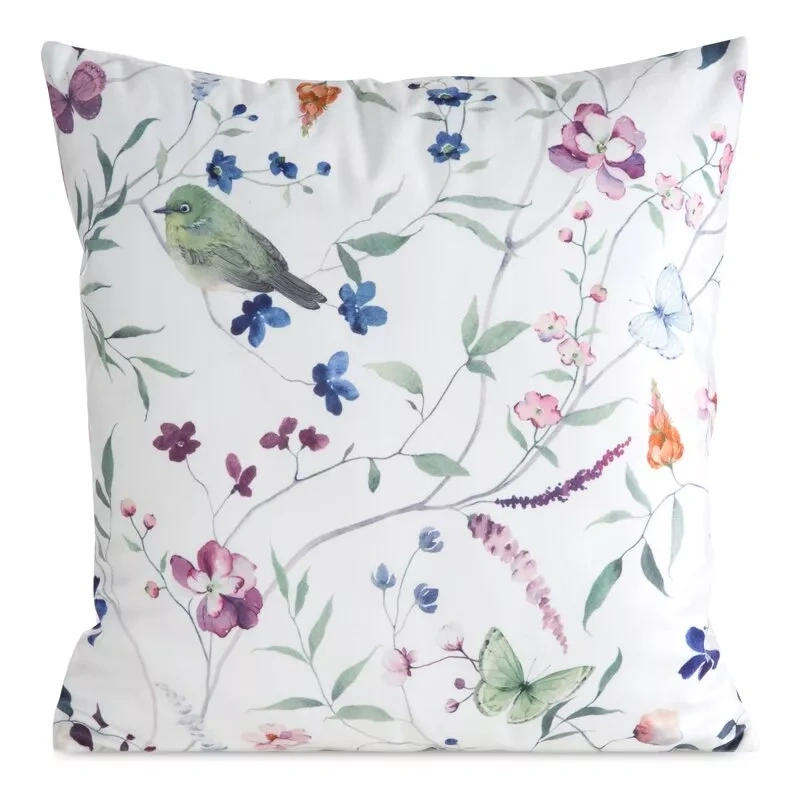 Realizzata in tessuto tipo mink (100% poliestere), la fodera è morbida al tatto e mantiene bene la sua forma. La superficie vellutata con una leggera lucentezza dona un aspetto curato ed elegante. Il motivo floreale aggiunge leggerezza e un’atmosfera romantica, adattandosi sia a interni moderni che classici – perfetta in combinazione con tessili tinta unita o altri cuscini decorativi.