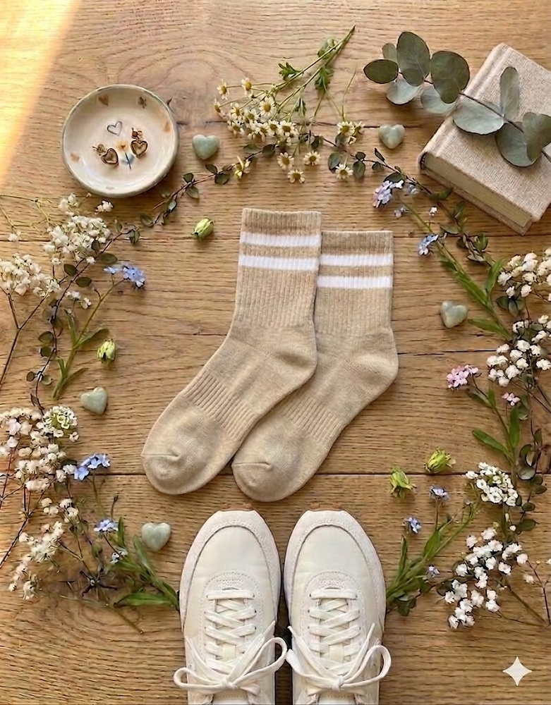Il bordo elasticizzato a costine non stringe e mantiene i calzini in posizione senza lasciare segni sulla pelle. Le sottili righe decorative aggiungono un tocco di stile discreto, rendendo questo modello facile da abbinare a look casual – con jeans, leggings o abbigliamento sportivo.