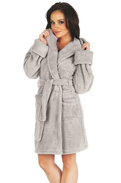 • Accappatoio corto e caldo da donna in tessuto morbido e sofficeCon cappuccioComposizione: 100% poliestereProduttore polacco