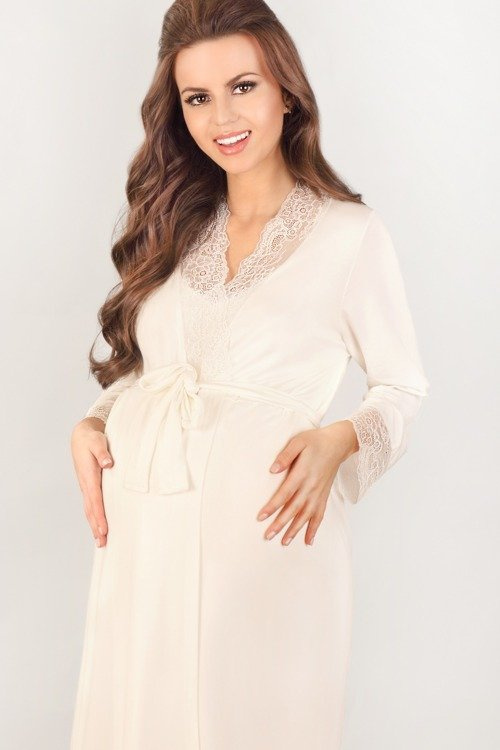 Un must per ogni futura mamma, soprattutto per il periodo in ospedale e per la cura del bambino. Può essere utilizzata come vestaglia o come copertura per l'ospedale. Tessuto morbido e di alta qualità, dai colori vivaci e delicati, si adatta perfettamente a qualsiasi dimensione del pancione. Scollo e polsini rifiniti con pizzo di grande effetto, legati in vita.