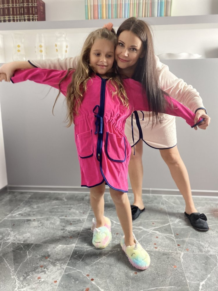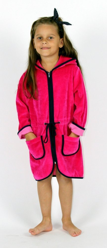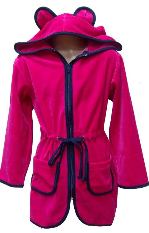 Vestaglia corta giacca con cappuccio per bambini con cerniera. In velluto. Cinghie regolabili in vita. Modello decorato con orecchie sul cappuccio. L'accappatoio si adatta perfettamente alla forma del corpo, è estremamente morbido e leggero. Avvolgersi in esso dopo il bagno è un piacere!