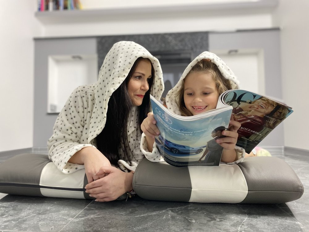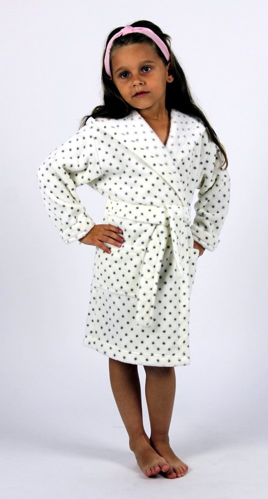 Accappatoio per bambini FOREX dal taglio dritto con cappuccio. Lunghezza al ginocchio, tasche laterali, fascia in vita con cintura da annodare. Tutti in piselli. L'accappatoio si adatta perfettamente alla forma del corpo, è estremamente soffice e leggero, realizzato in morbido tessuto a maglia. Avvolgersi in esso dopo il bagno è un piacere!