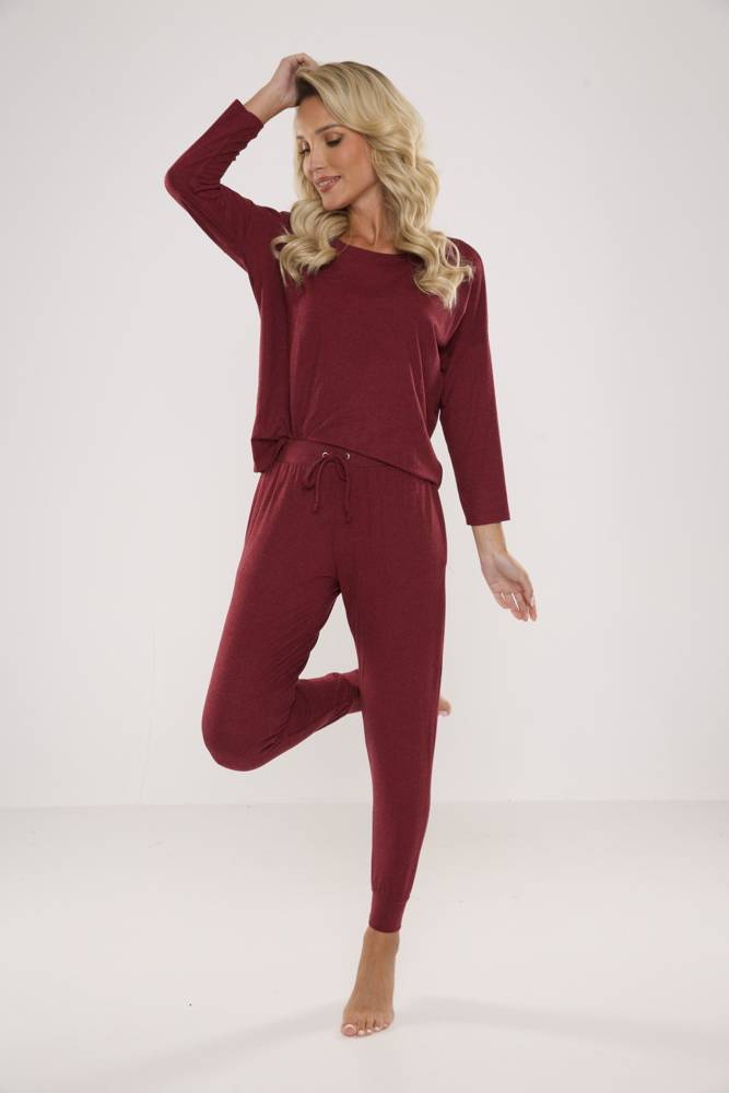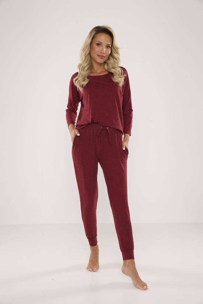 Pigiama da donna in viscosa di alta qualità con elastan. Felpa con maniche a 7/8 dal taglio ampio e confortevole. Completo di pantaloni lunghi con tasche. Cintura con ampia fascia elastica, confortevole fodera in viscosa. Gambe rifinite con un filetto.