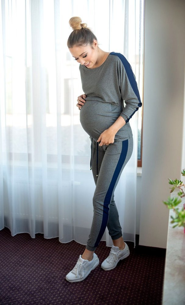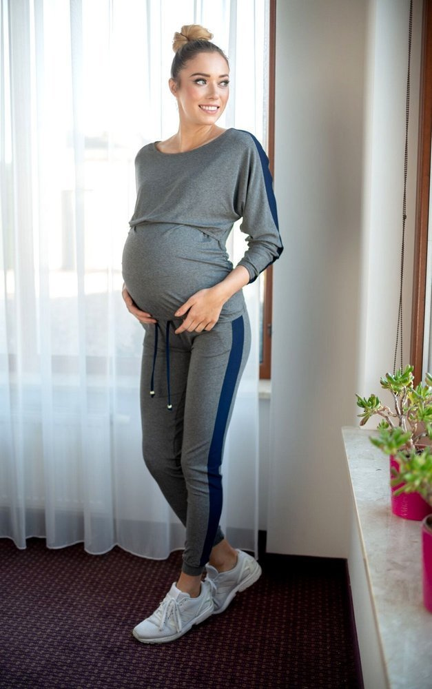 Klasyczny a jednak stworzony specjalnie z myślą o mamach komplet dresowy to połączenie wygodnych spodni na gumkę z bluzą, która dzięki odciętej górze pozwoli wygodnie nakarmić malucha , a poprzez zastosowanie marszczenia ba bokach idealnie dopasowuje się do rosnącego ciążowego brzucha.
