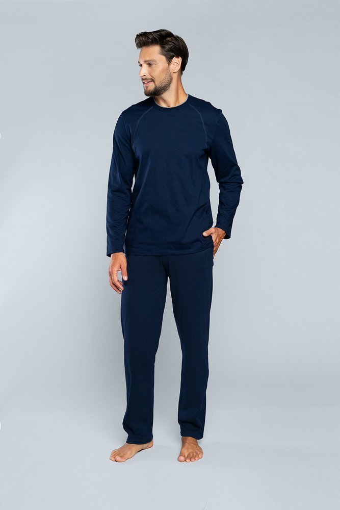 Niko Pigiama uomo manica lunga, pantaloni lunghi Moda italiana - blu navy
