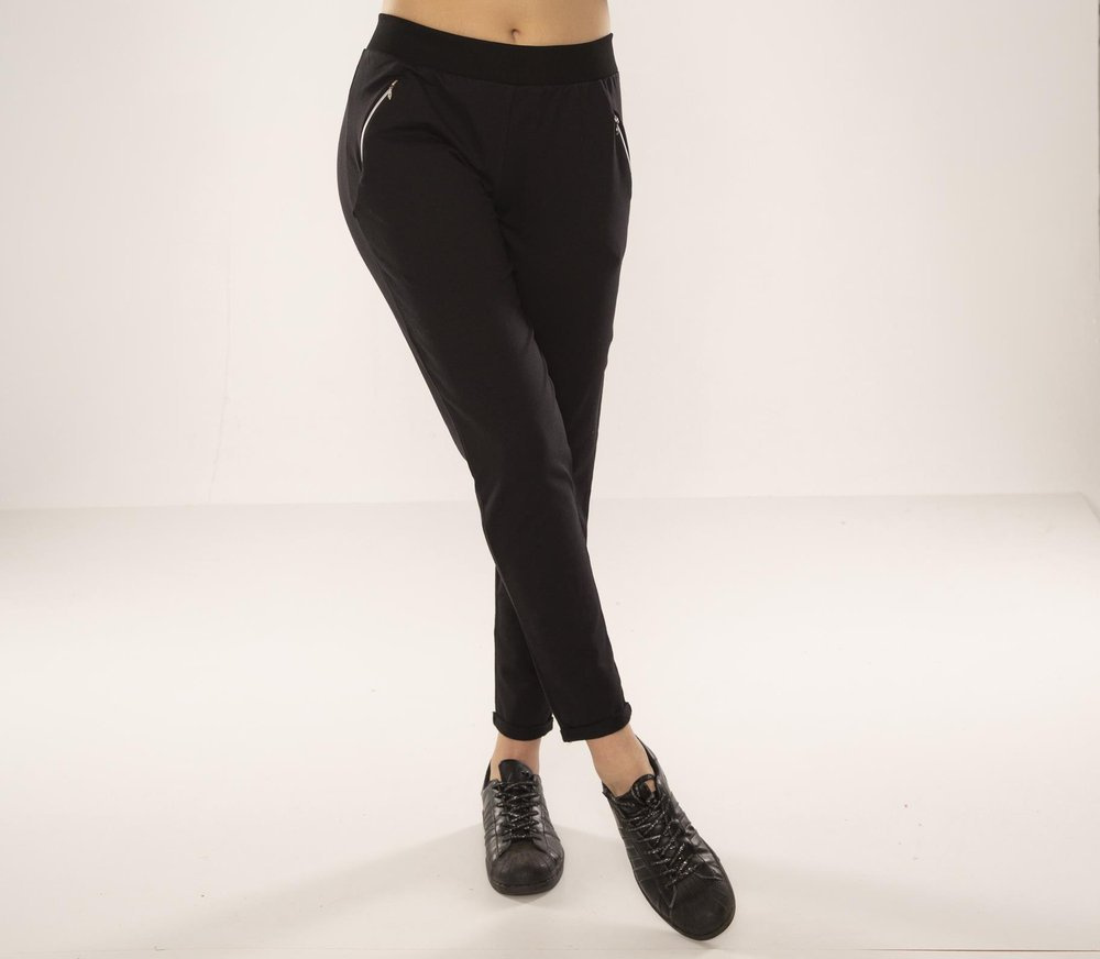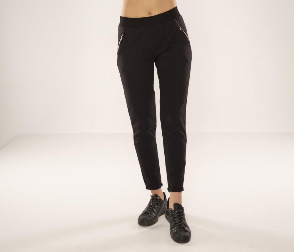 Pantaloni da ginnastica in cotone di alta qualità. Comoda coulisse in vita. Tasche con zip all'altezza dei fianchi. Gambe leggermente affusolate che terminano con un piccolo polsino.