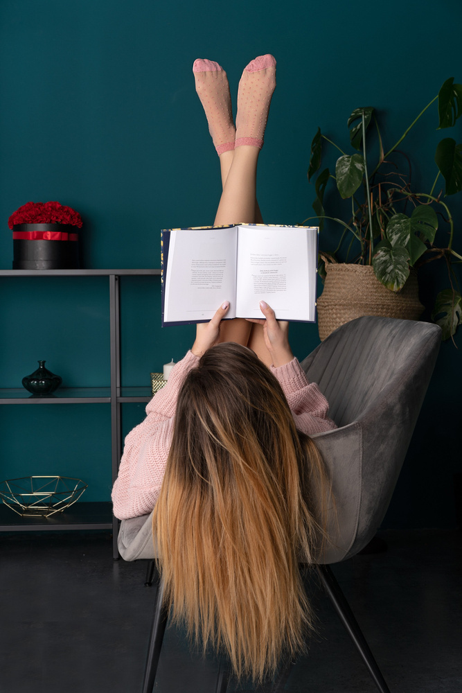 Calzini a pois pastello che deliziano e catturano lo sguardo, proprio come un bicchiere di champagne rosa con le bollicine.