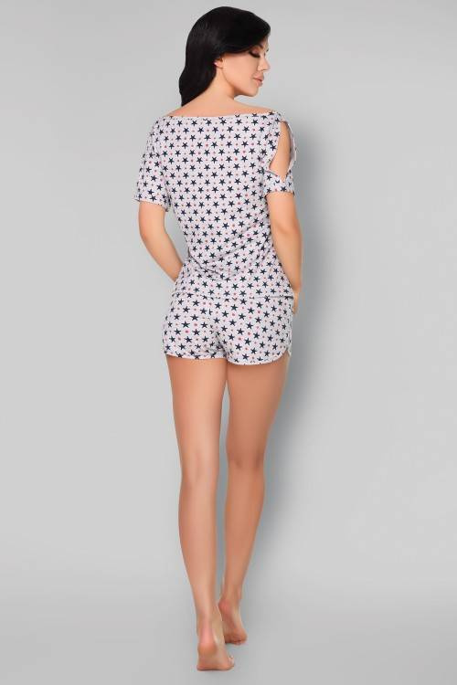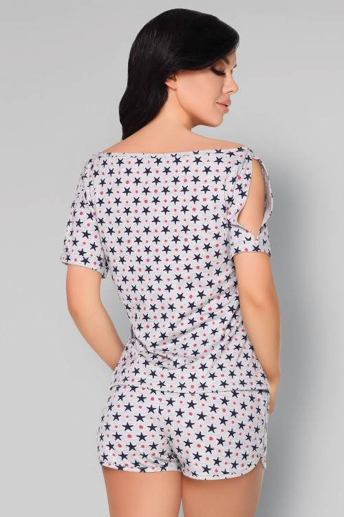 Il comodo pigiama in cotone comprende una maglietta a maniche corte con tagli e pantaloncini corti.