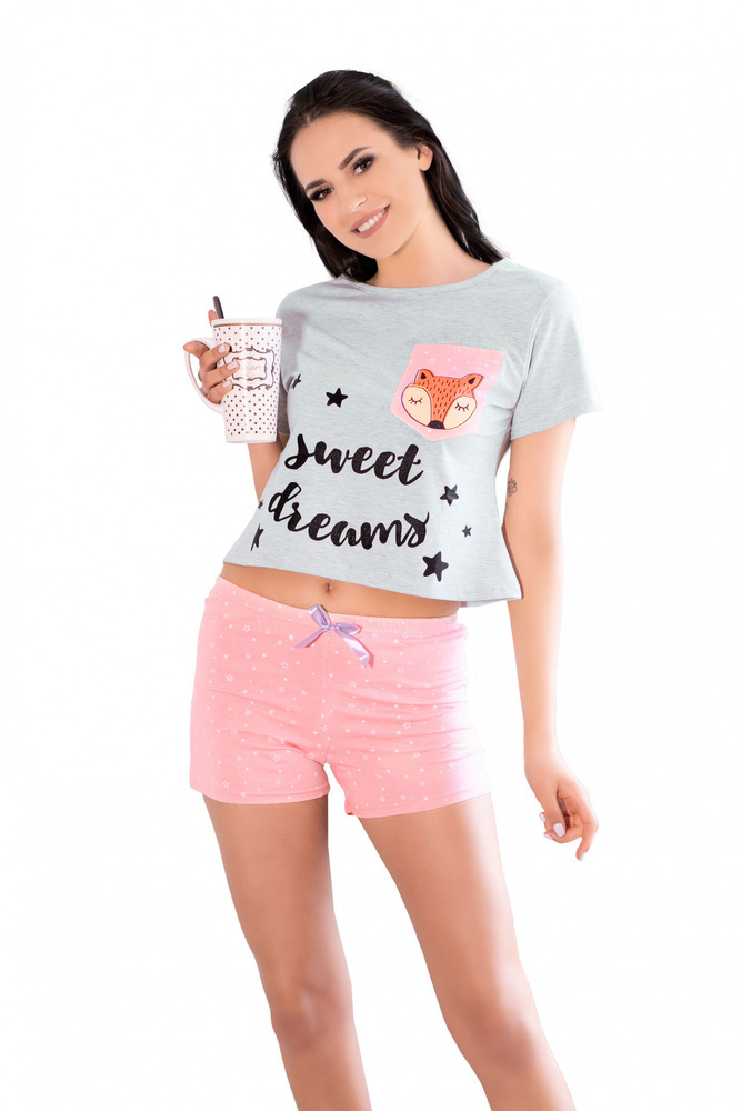 • Pigiama da donnacamicia a maniche cortepantaloncini 100% cotone