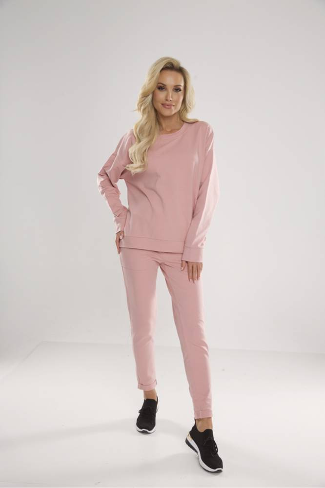 Confortevole tuta da ginnastica da donna in materiale adatto al corpo. Felpa a maniche lunghe dalla vestibilità ampia .