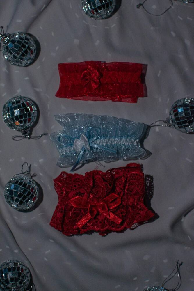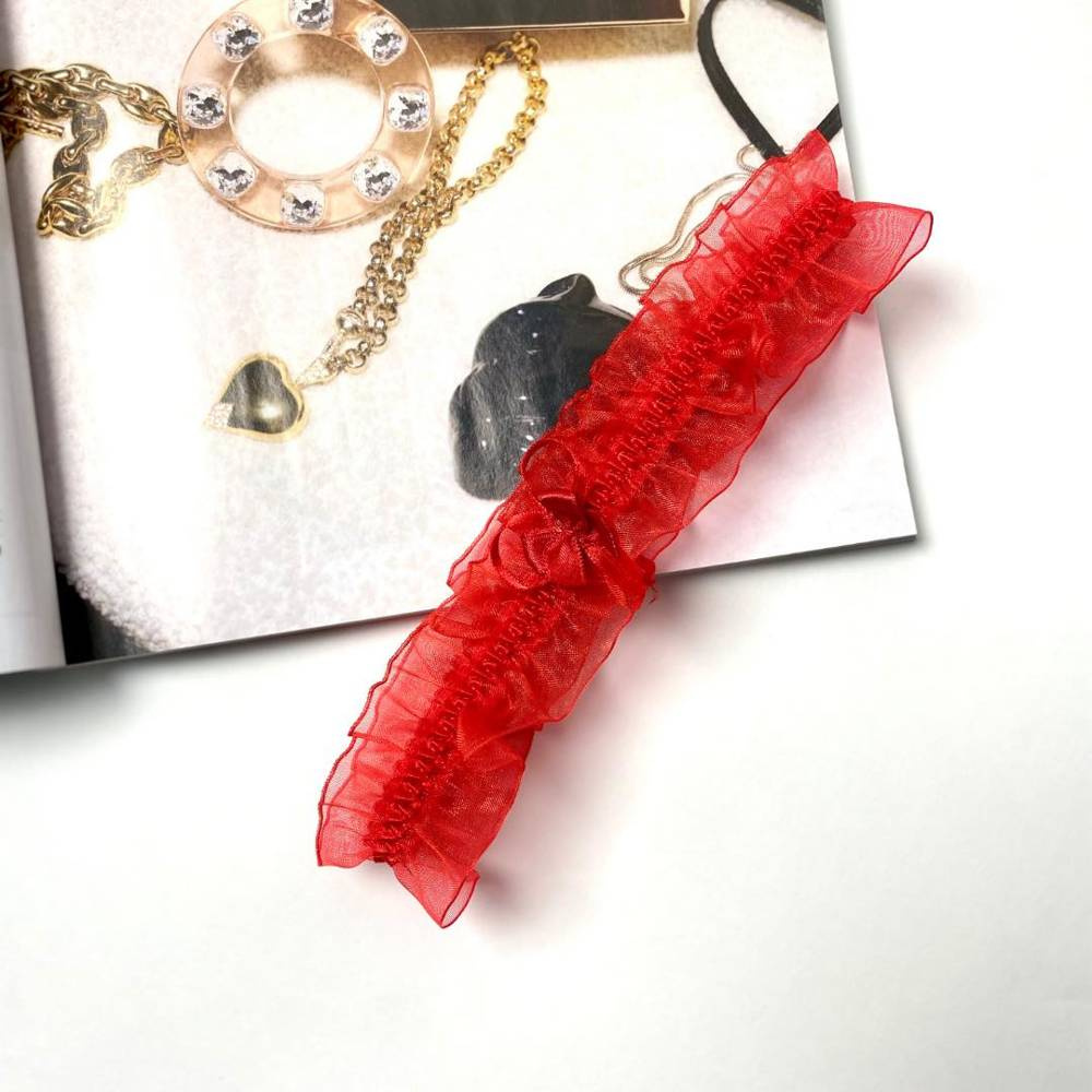La giarrettiera è un gadget sottile ed estremamente sensuale per le seduttrici e un accessorio di grande effetto per varie occasioni come i balli di fine anno. Realizzato in chiffon, decora perfettamente la coscia di una donna, mentre l'elastico lo mantiene al suo posto.