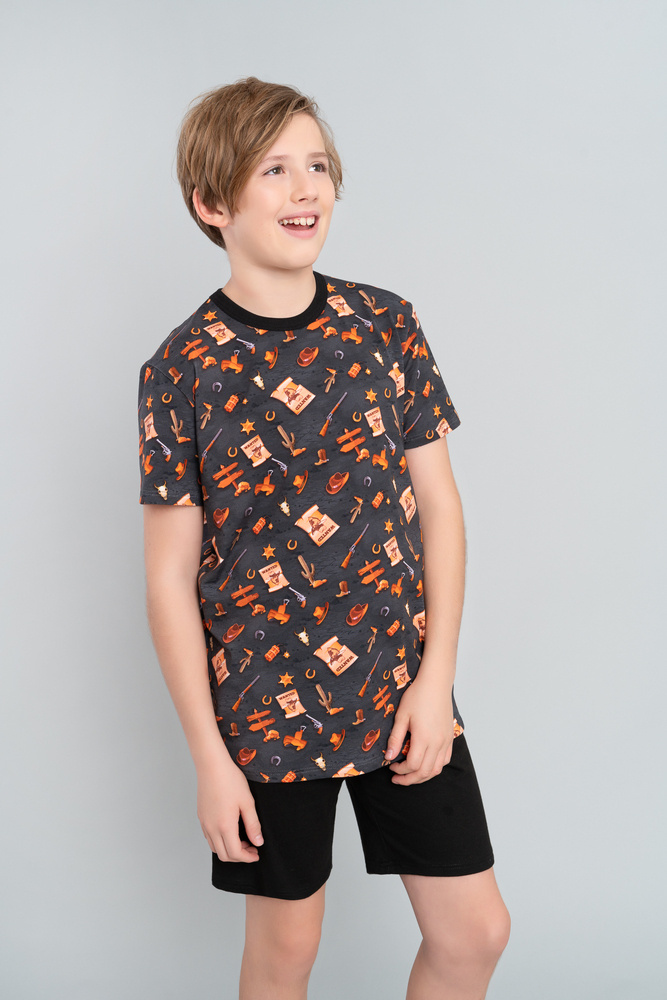 Pigiama Western Boys a maniche corte, pantaloni Italian Fashion- grafite/nero