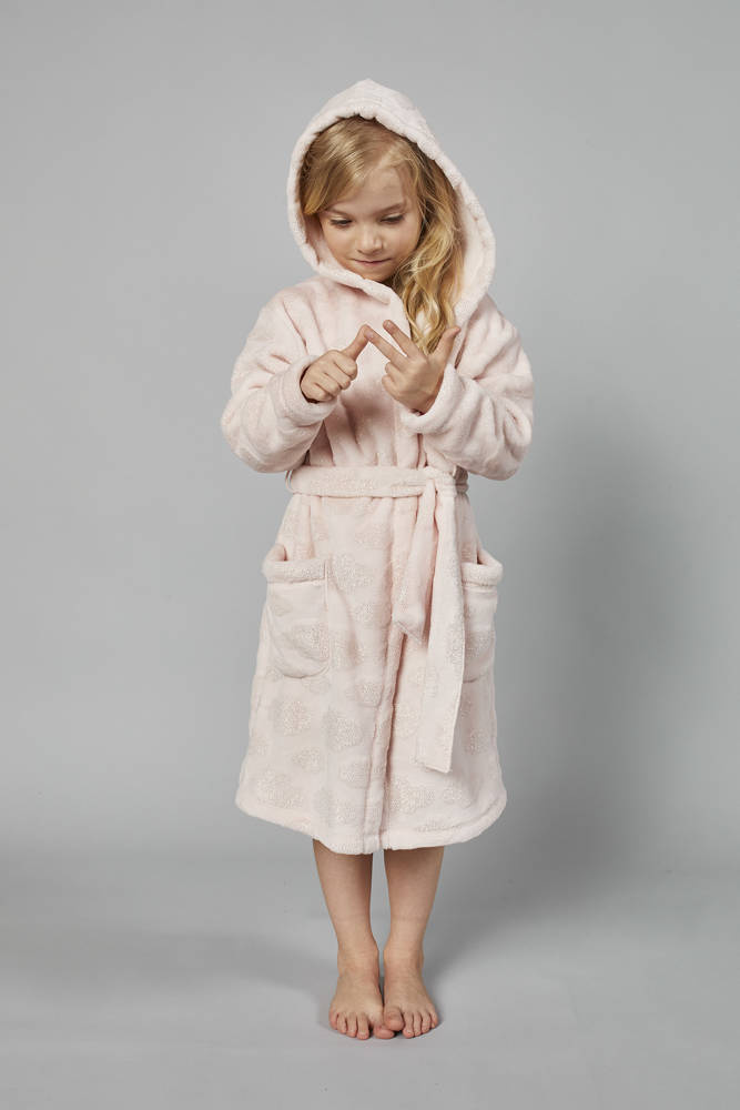 • Accappatoio da ragazza legato in vita con cappuccioModa italiana Per completare il set è possibile acquistare la vestaglia Drina