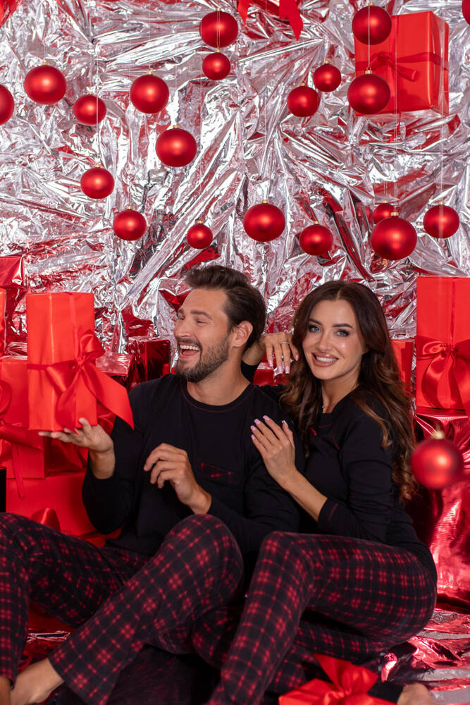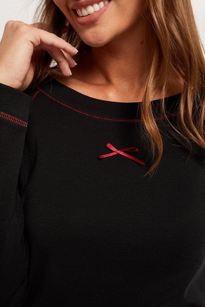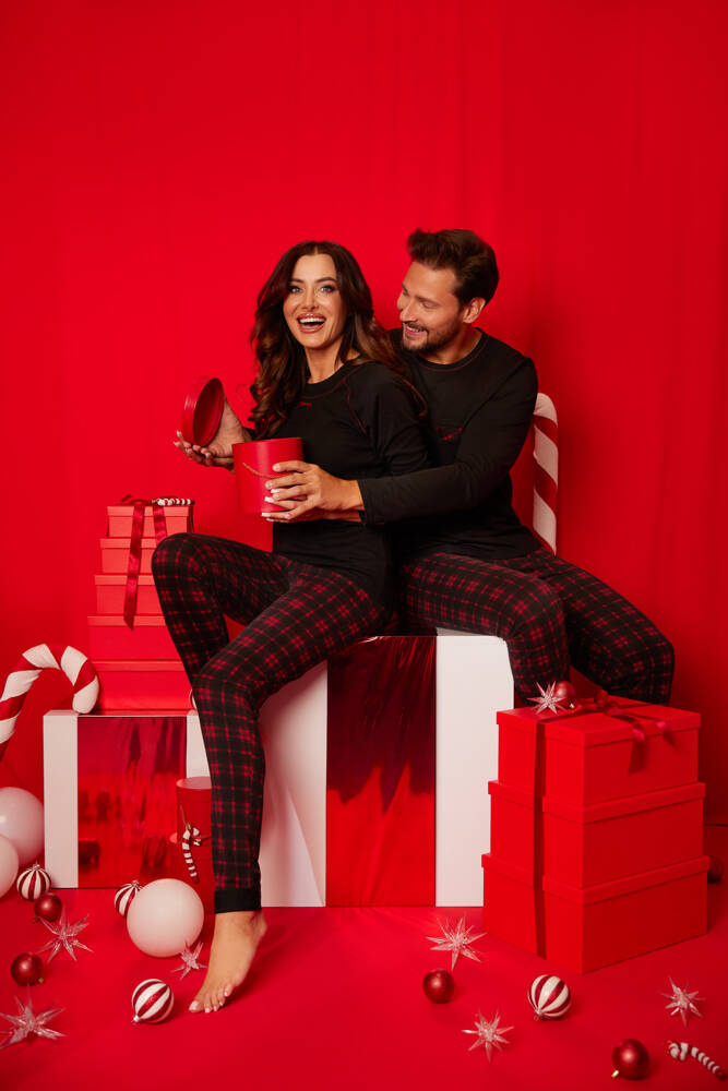 Il taglio classico e semplice del pigiama Ordesa è una proposta invernale per le donne. Cattura l'attenzione con il suo taglio sottile e delicato. Nonostante i colori intensi e profondi, l'insieme ha un carattere molto leggero e piacevole. La blusa nera a maniche lunghe è impreziosita da un piccolo fiocco e da un orlo intorno alla scollatura di colore rosso. Il taglio minimamente affusolato della camicetta accentua splendidamente il punto vita e la silhouette femminile. I pantaloni del pigiama sono pantaloni lunghi cuciti con una maglia a quadri rossi e neri, rifiniti con un polsino nero. La gomma senza pressione rende il prodotto estremamente comodo e confortevole.