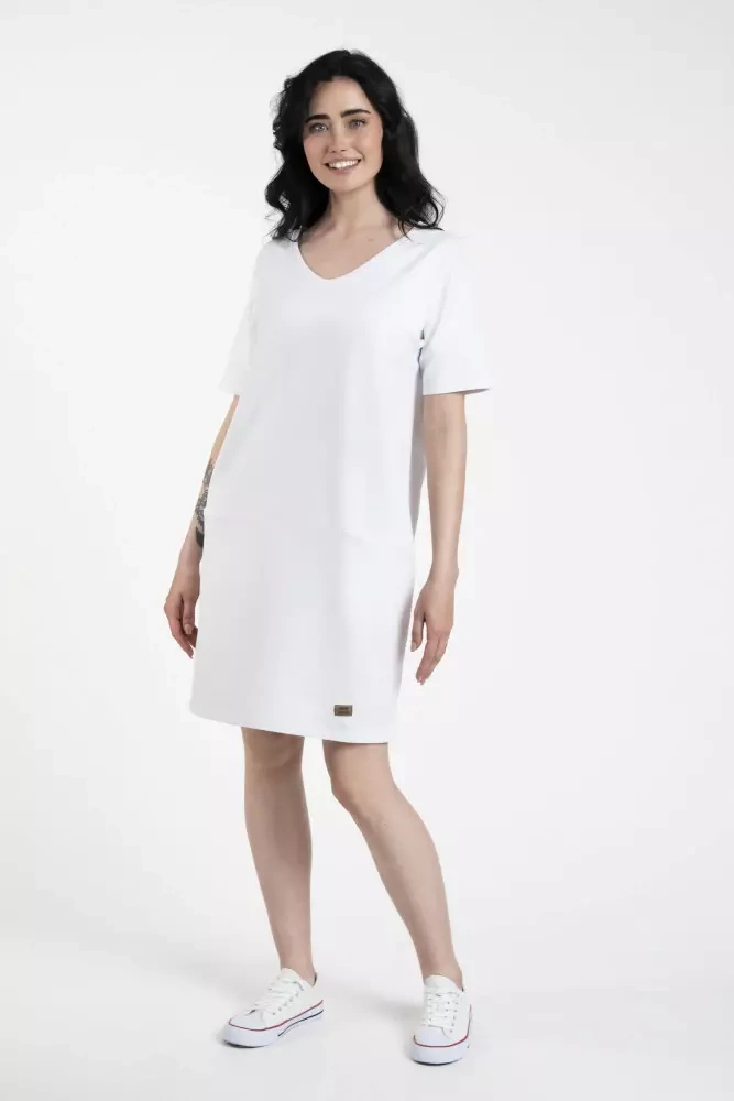 La versatile tunica Karina con maniche corte è una proposta per tutto l'anno. Realizzato in maglia di cotone di altissima qualità, una combinazione di cotone di alta qualità con un tocco di elastan. È molto comprimibile e allo stesso tempo comodo da indossare.