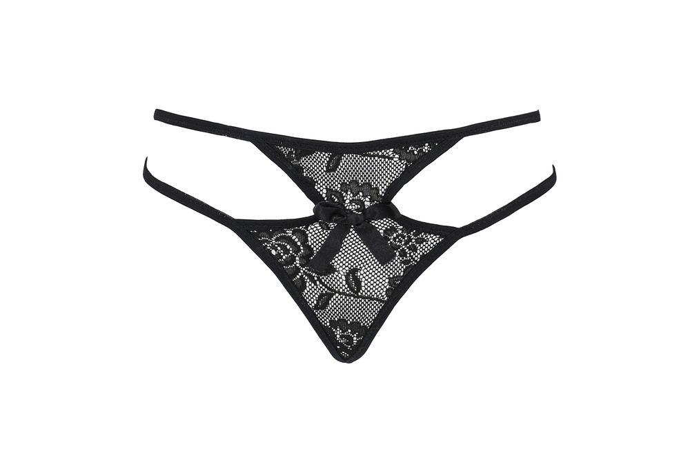 Sexy perizoma in pizzo trasparente. Fiocco decorativo al centro.